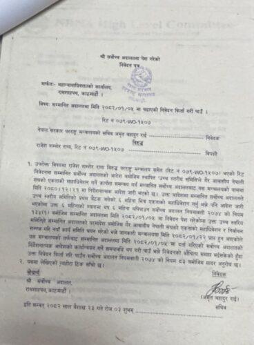 सर्वोच्च अदालत नियमावली, २०७४ को नियम ८३ बमोजिम निवेदन फिर्ता लिने प्रक्रिया अगाडि बढाइएको पनि पत्रमा उल्लेख छ ।