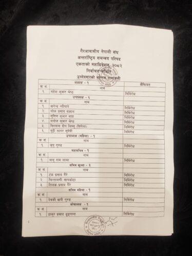 नव निर्वाचित कार्यसमितिको नामावली यस प्रकार छ :