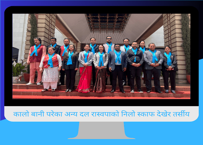 कालो झण्डा र कालो पट्टीको बिरोध गरेका र त्यस्तो मात्र देखेका नेपालका अन्य दलहरु राष्ट्रिय स्वतन्त्र पार्टी (रास्वपा) का सांसदहरुले गृहमन्त्री लेखको मानव तस्करीसँग जोडिएकाले त्यसको बिरोधमा निलो रिबनको स्काफ बाँधेर संसद प्रवेस गरेपछि अन्य दलहरु तर्सीएका छन्।