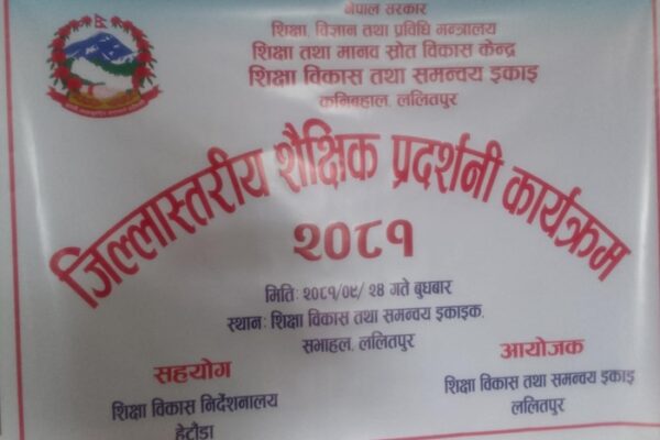 शिक्षा विकास तथा समन्वय इकाई ललितपुरको आयोजना तथा शिक्षा विकास निर्देशनालय हेटौंडाको सहयोगमा ललितपुरमा बृहत जिल्ला स्तरीय शैक्षिक प्रदर्शनी कार्यक्रम…